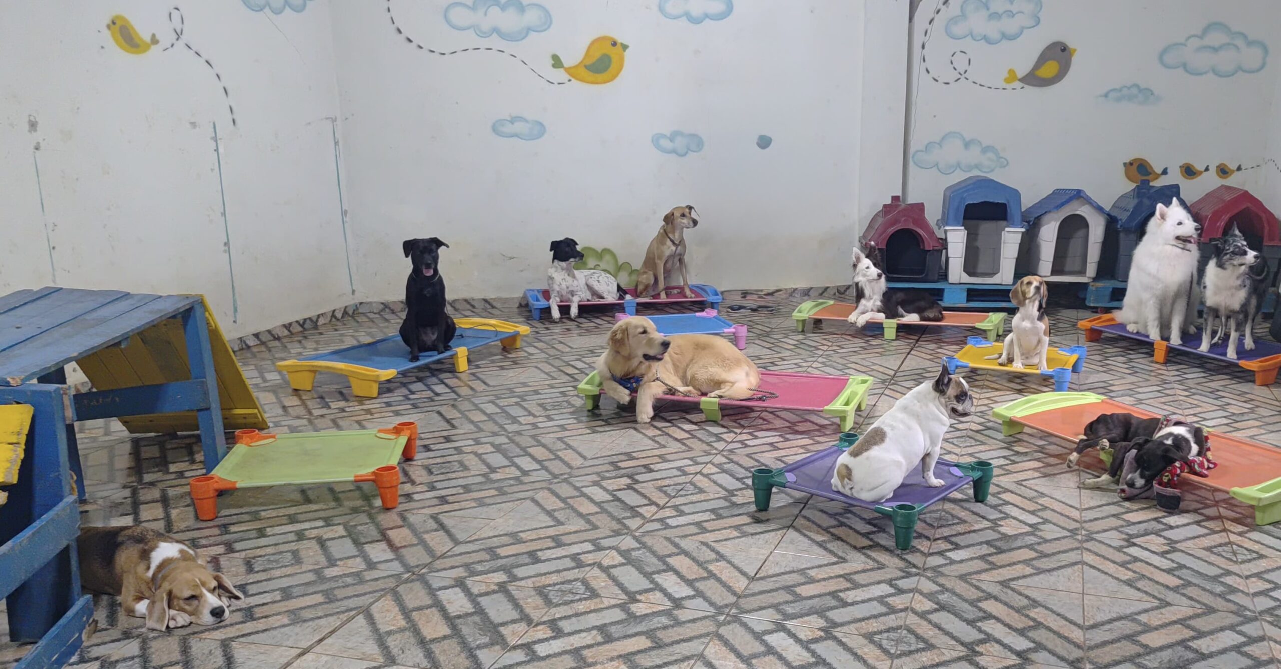 Seu cão vai socializar com outros amigos, correr livremente, brincar e participar de atividades que estimulam corpo e mente.